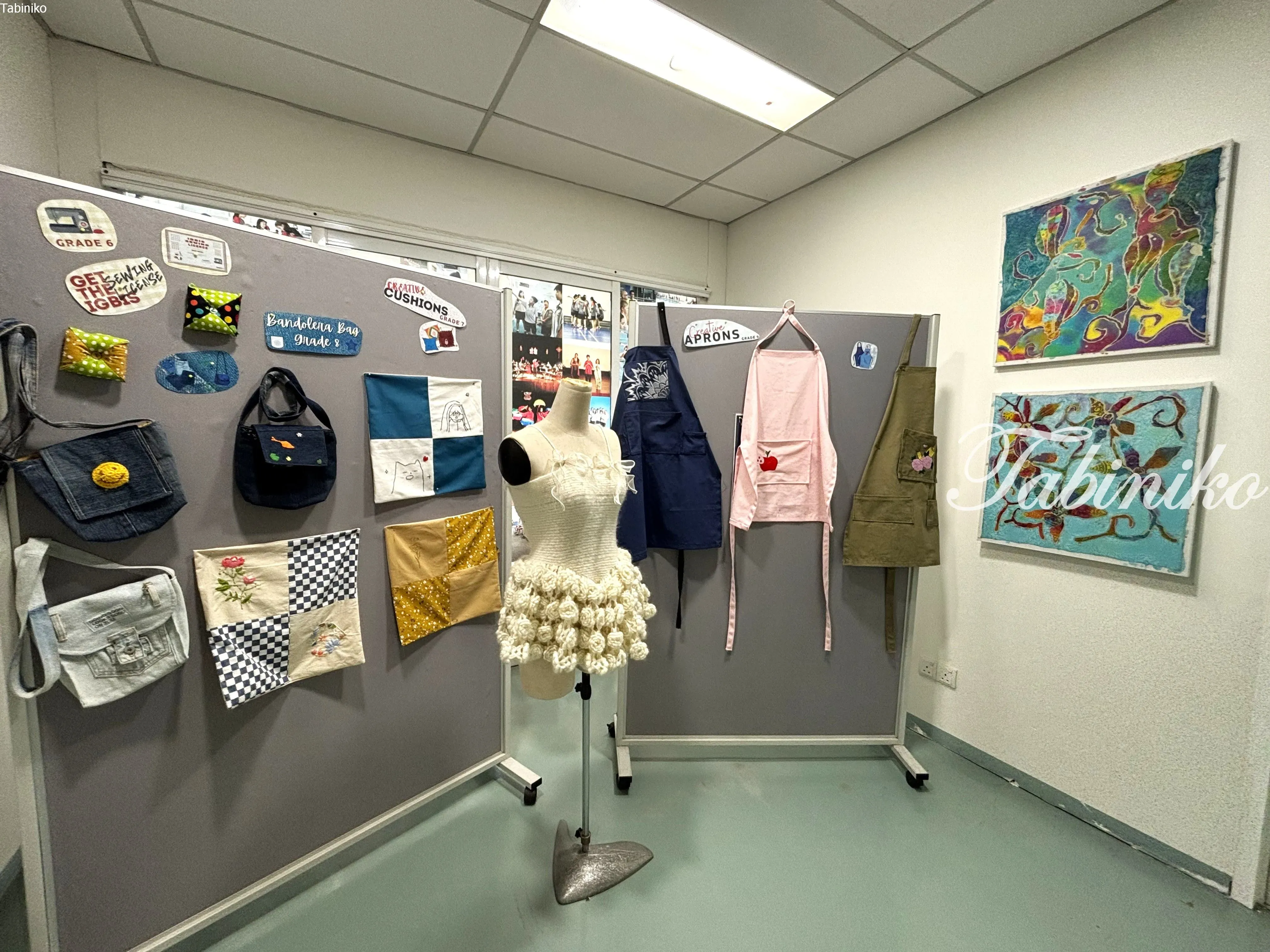 這裡有馬來西亞傳統蠟染布(Batik)作品,也有用縫紉機縫製的布料作品和編織作品等。