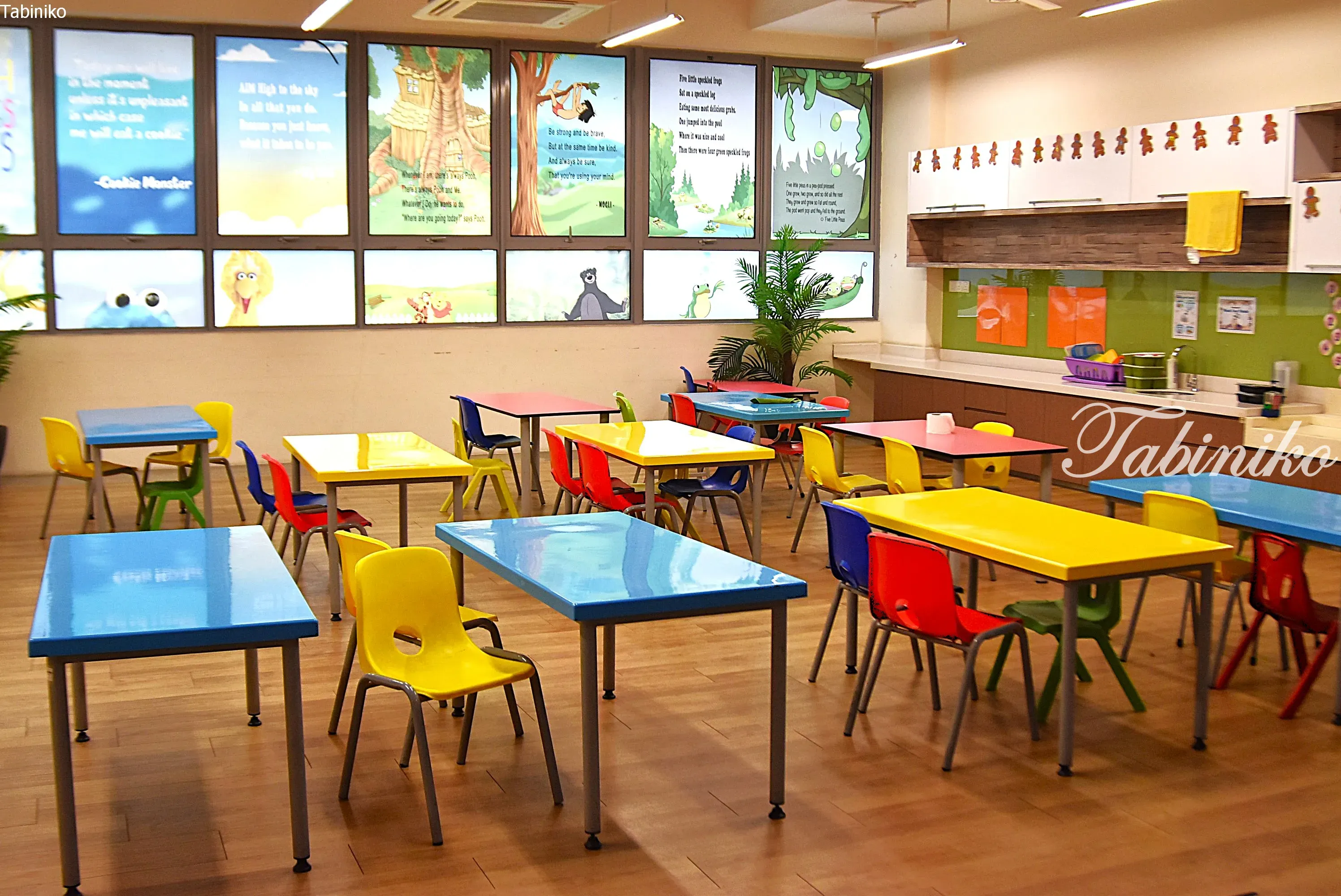 由于是大型学校,早餐和午餐的时间会根据幼儿园、小学、中学和高中的年级进行错时安排。