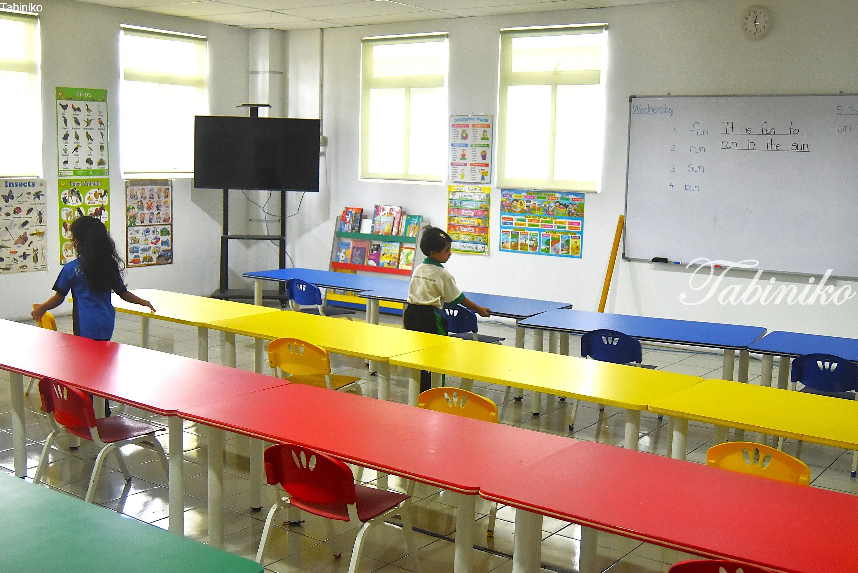 學校周圍是住宅區和公園,環境非常安靜。附近沒有可步行前往的公寓,因此學生需乘車或搭校車上下學。