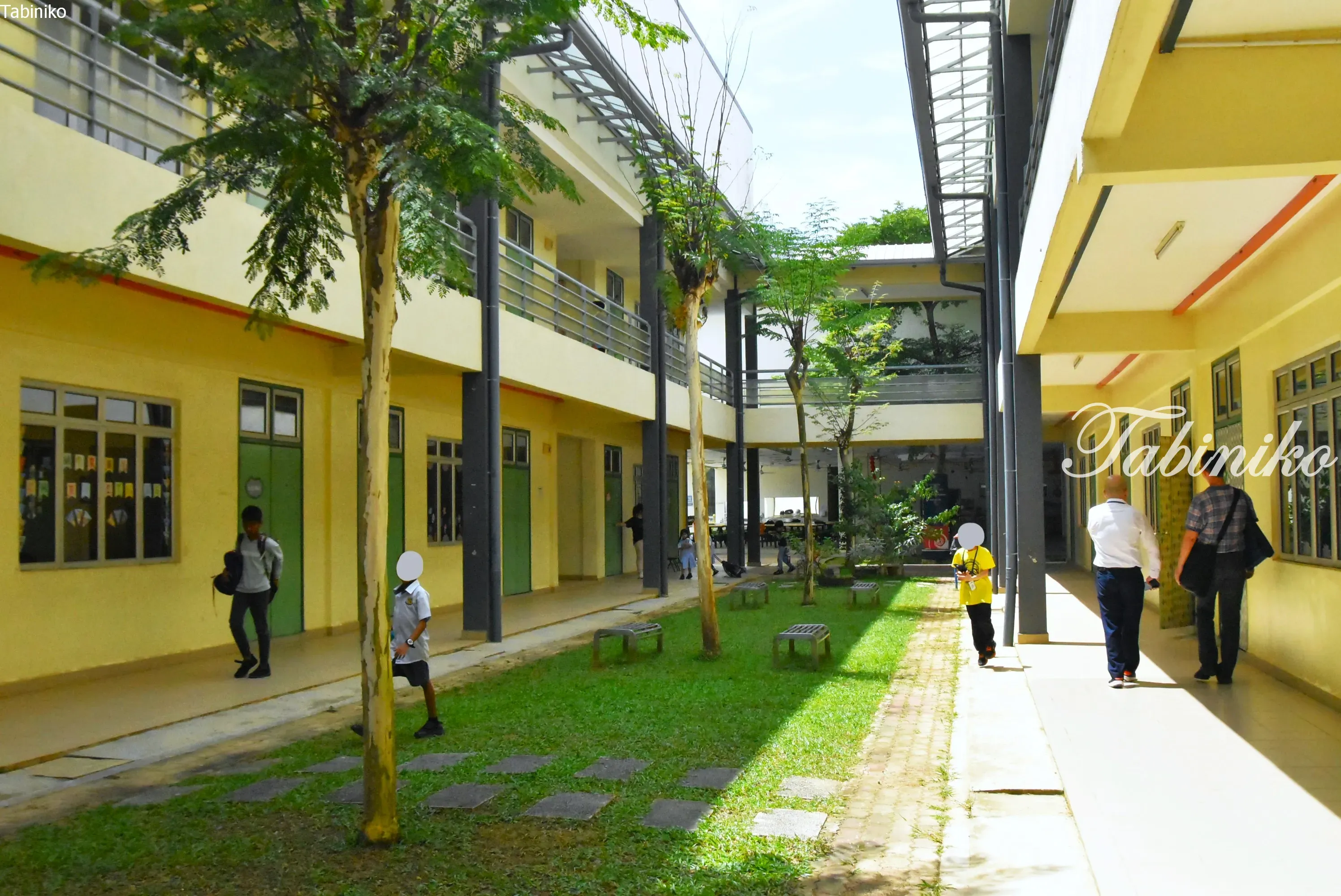 校舍設計通透,視野開闊,中庭有草坪和樹木,環境非常舒適(#^.^#)
