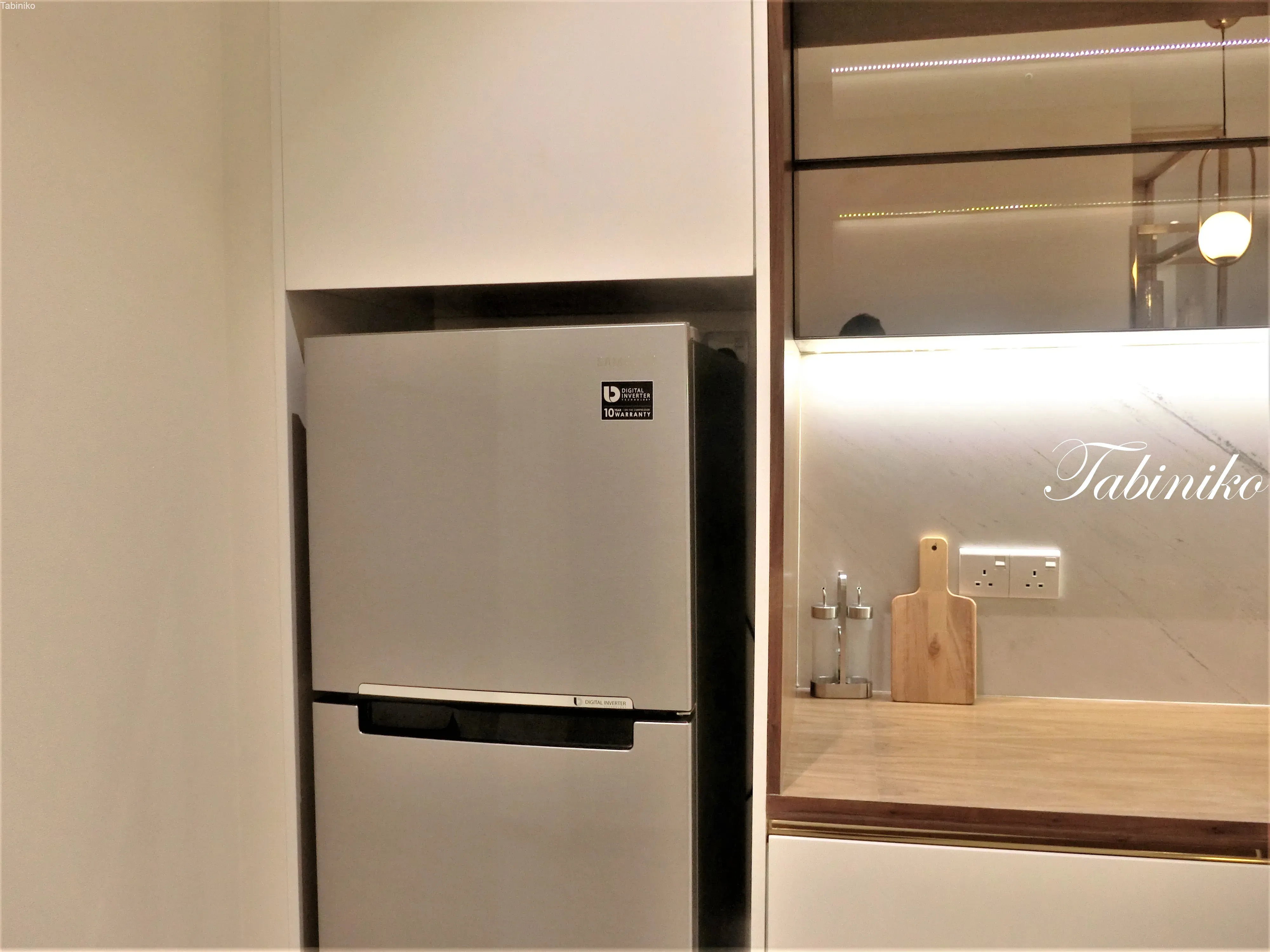 它是L型,易於烹飪,且設計簡潔幹凈。對於那些想自己做飯的人,距離公寓約有5分鐘的步行路程,隔壁就是超市,因此您可以在Cold Storage裏購物,並在漂亮的廚房裏做飯。