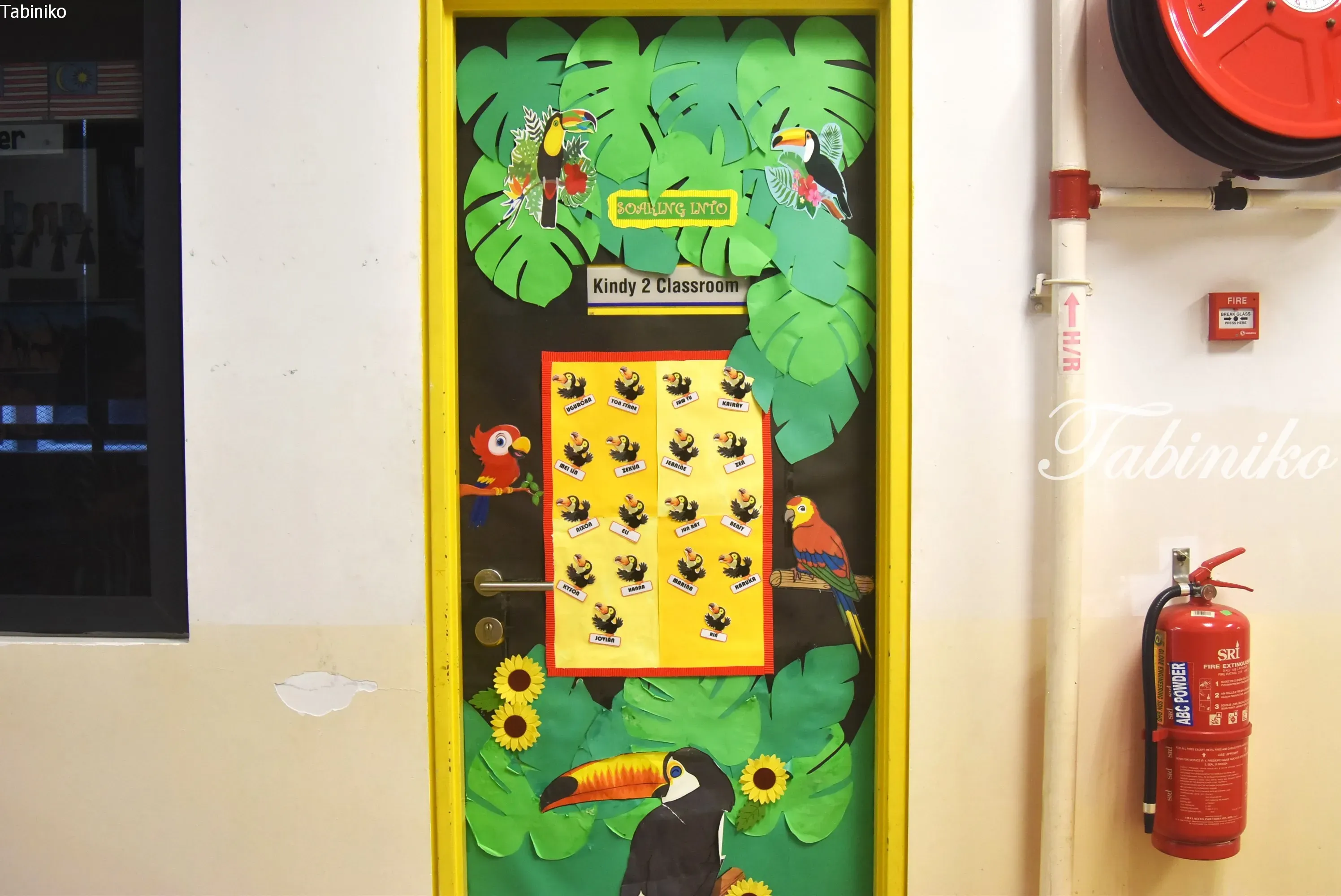 每個教室的門和牆壁都有裝飾,以指示課程的科目。