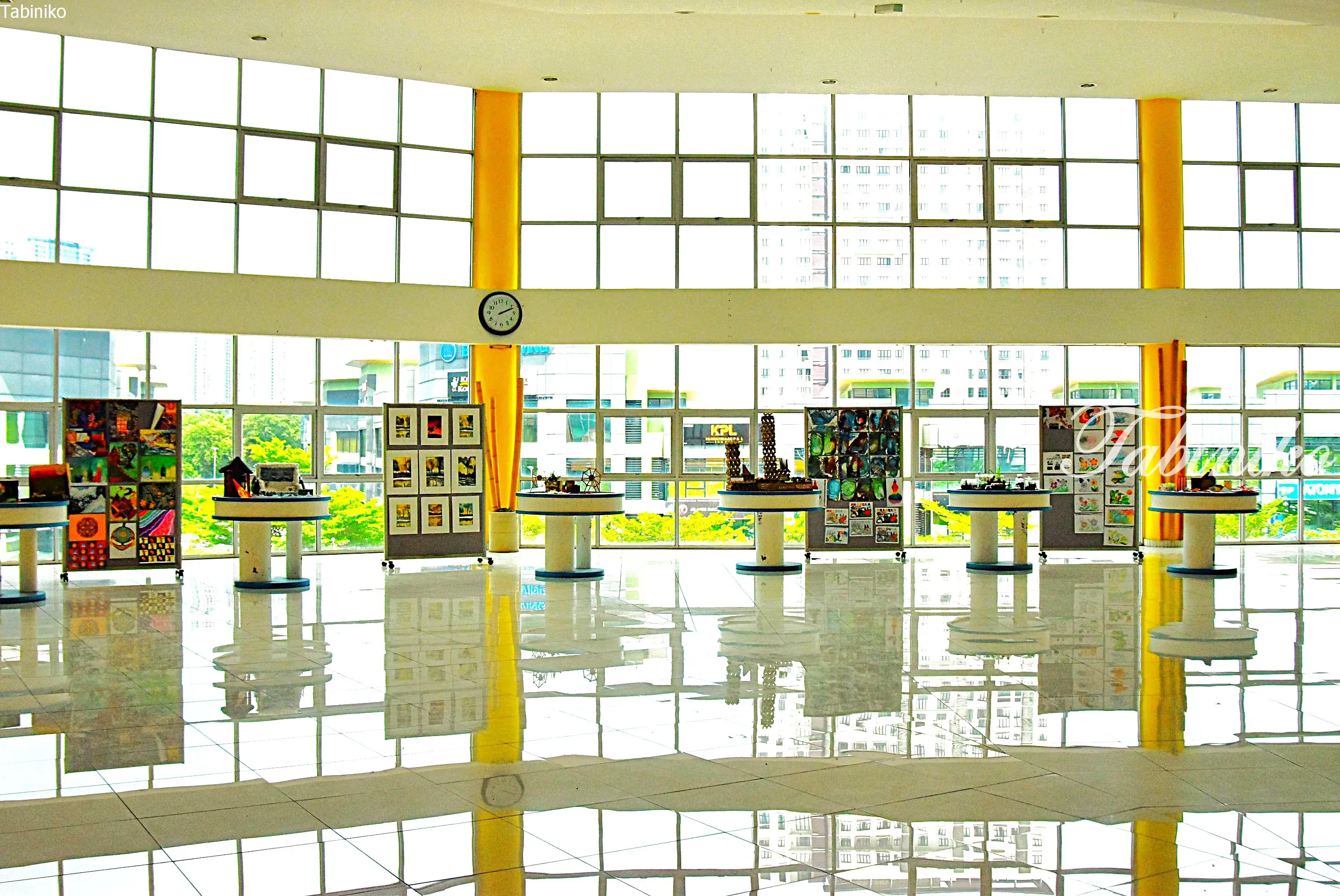 入口盡頭的大廳也是全玻璃牆,顯得非常明亮。大廳裡展示了許多學生的藝術作品。