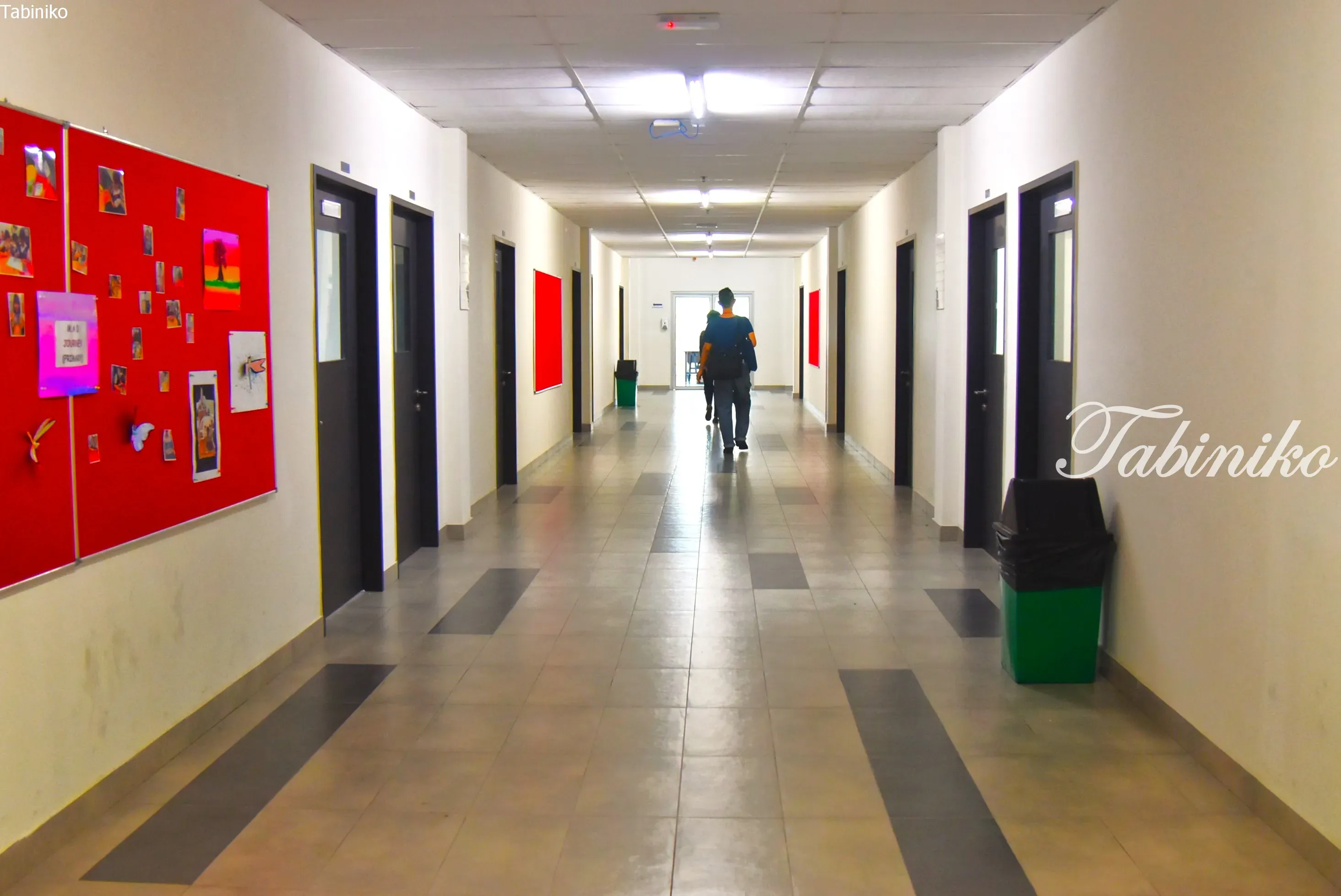 這是一個乾淨的餐廳,學生們似乎有指定的座位區域。