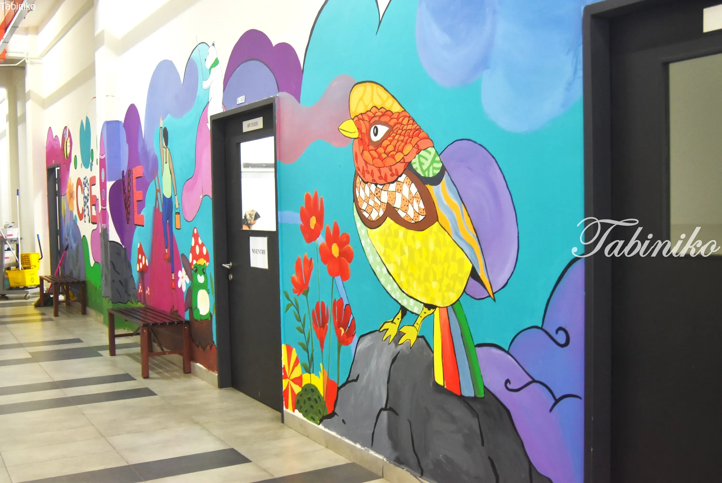 教室門和走廊都色彩豐富,充滿可愛氣息。