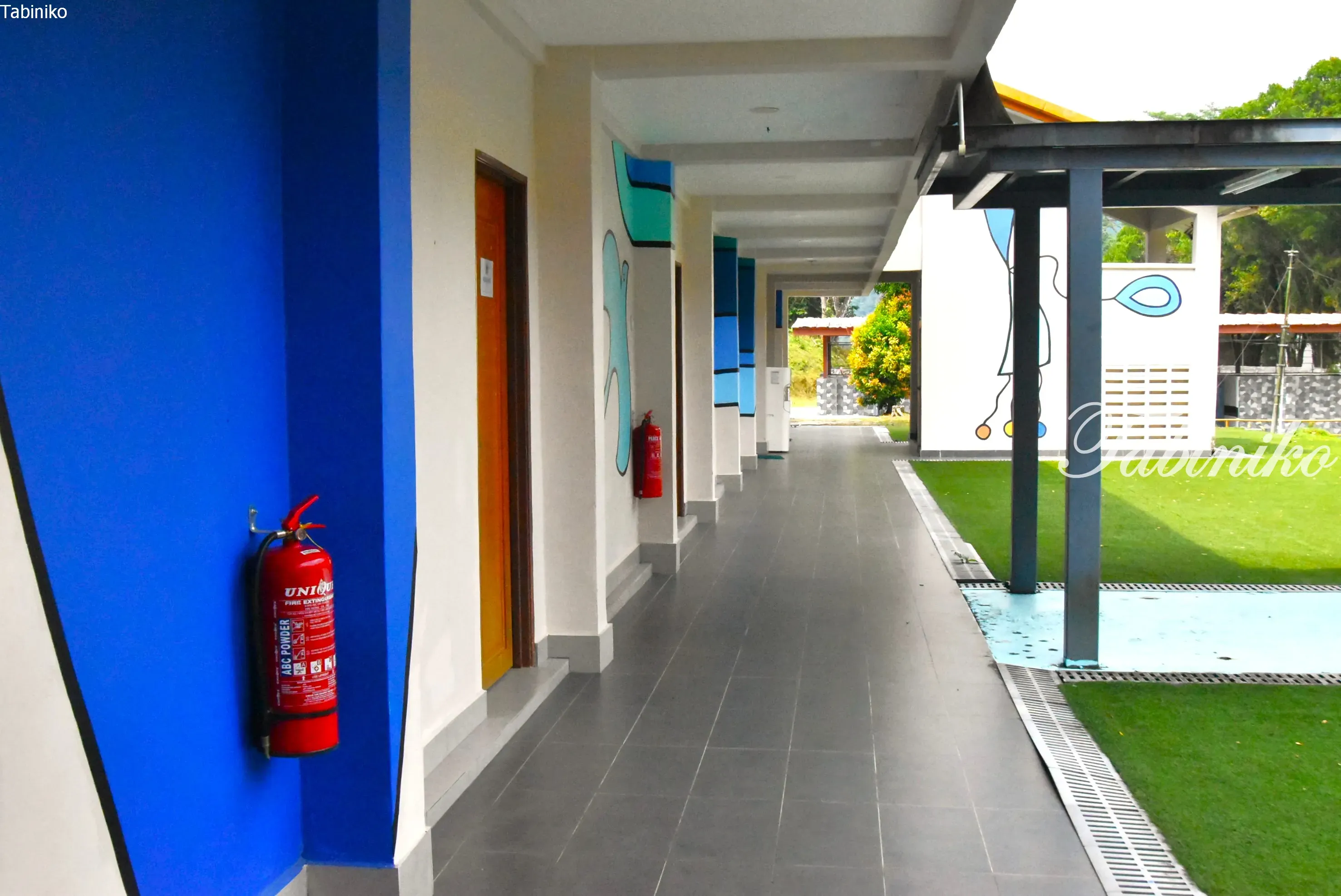 走廊兩旁有綠色植物和樹木,光是待在學校就讓人感到非常清新。