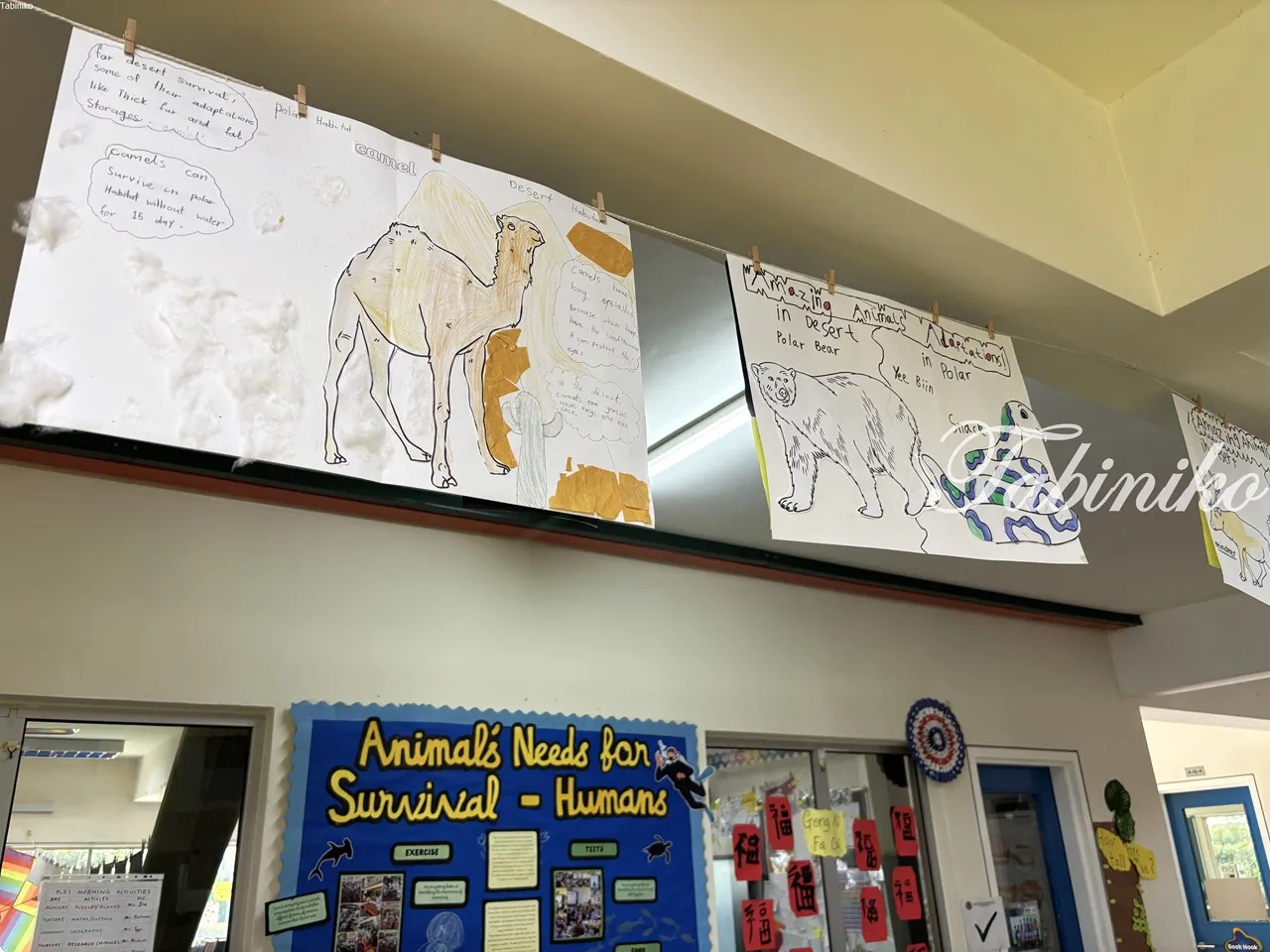 正在前往中學生教室的途中,天花板上還有這樣漂亮的裝飾品!! 如果什麼都沒有,會顯得有些單調,孩子們可能會覺得有點害怕,但有了這樣漂亮的裝飾,就會讓人感到興奮、期待呢!!
